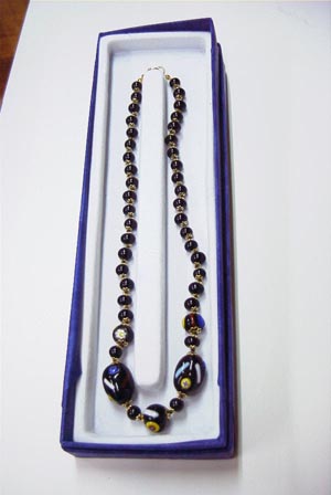 ELegans pearls line madeinitaly イタリアで創られたエレガントな ネックレスでブラックをベイスに青 白 赤 黄色 茶色など斬新なデザインです。 長さ44cm 販売価格\6,000- THIS JEWEL IN VENETIAN PEARLS HAND MADE |