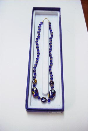 ELegans pearls line madeinitaly イタリアで創られたエレガントな ネックレスで青色をベイスに 青 白 赤 黄色 茶色など斬新なデザインです。 長さ44cm 販売価格\6,000- THIS JEWEL IN VENETIAN PEARLS HAND MADE |